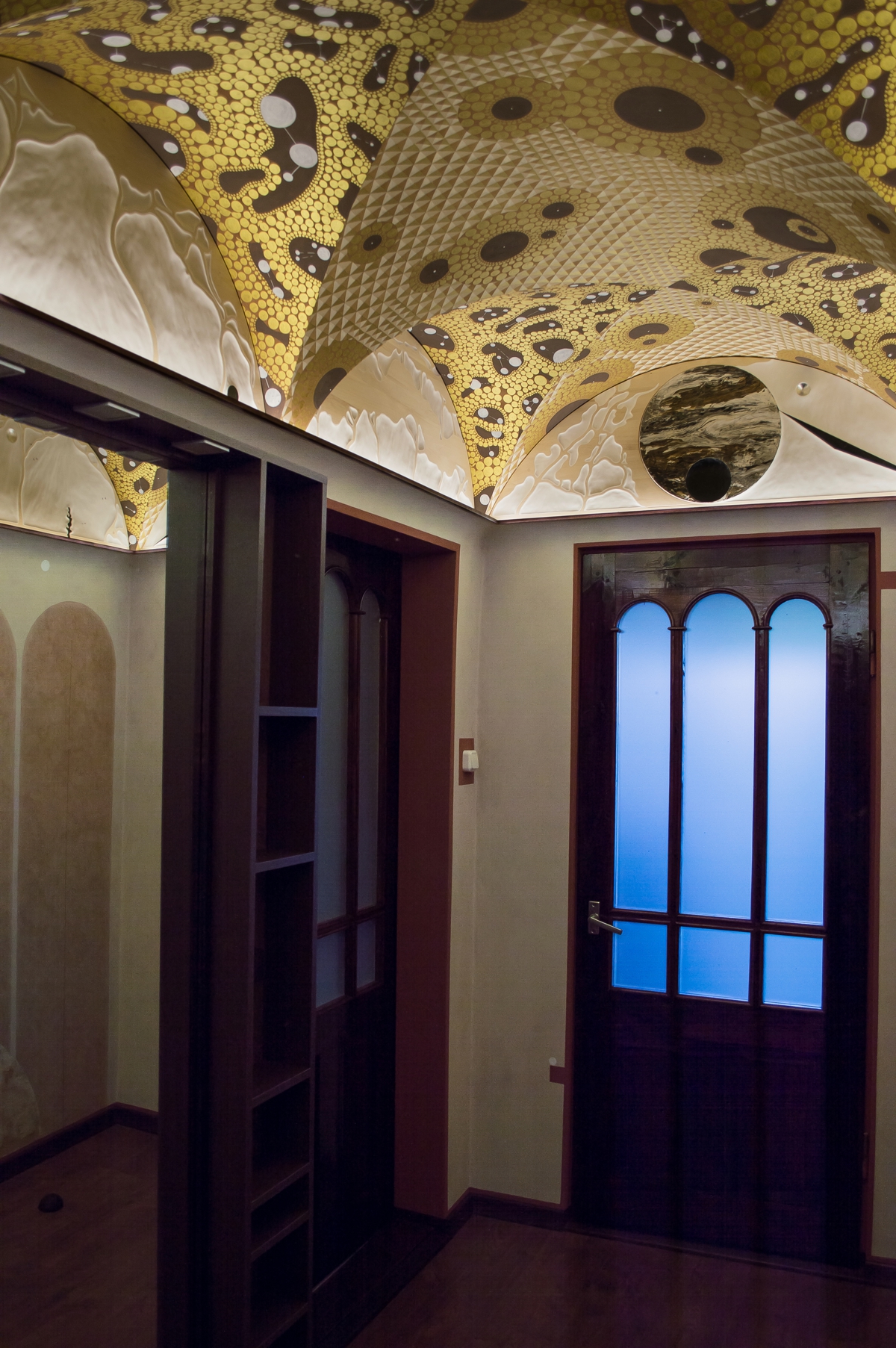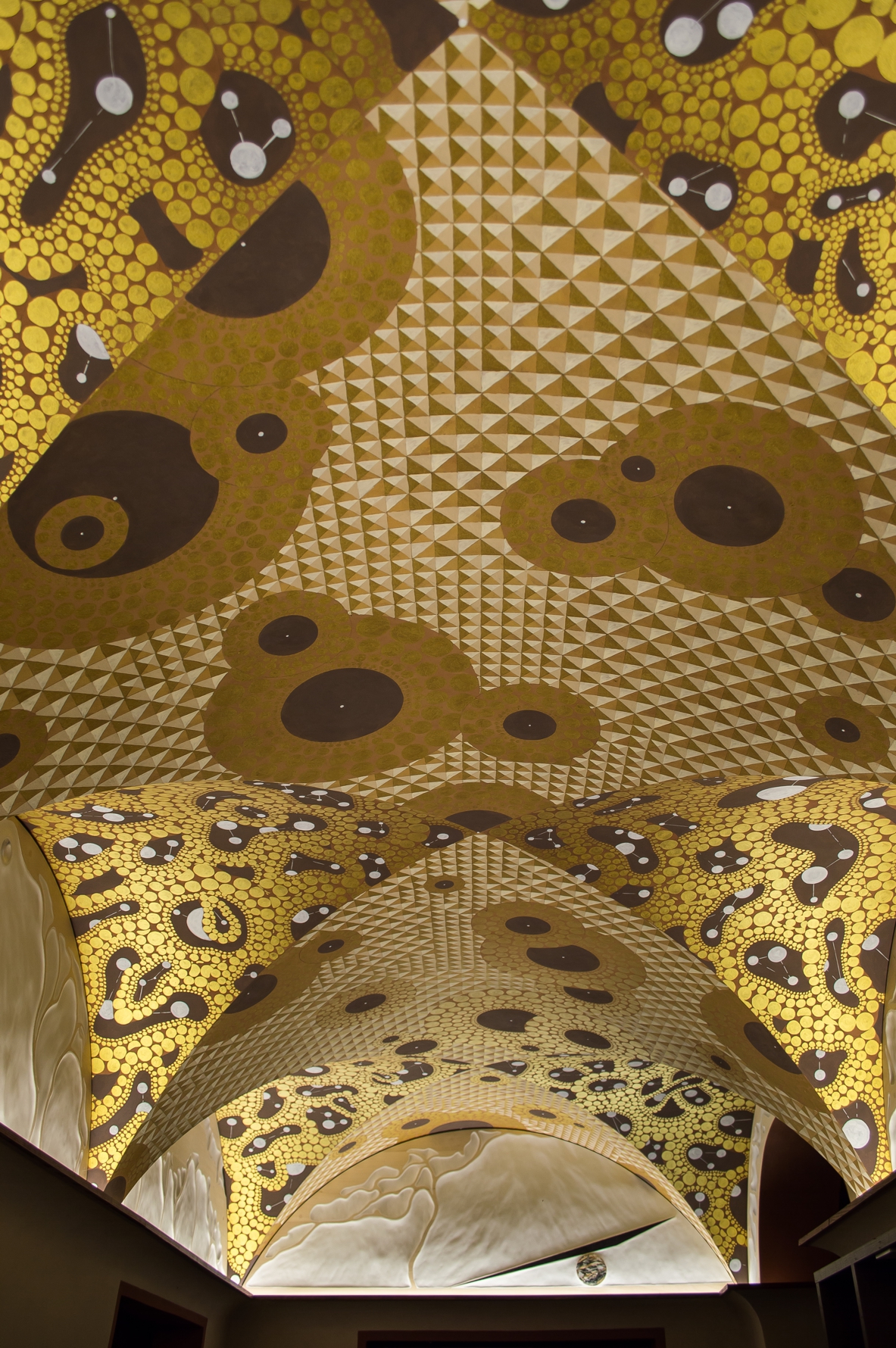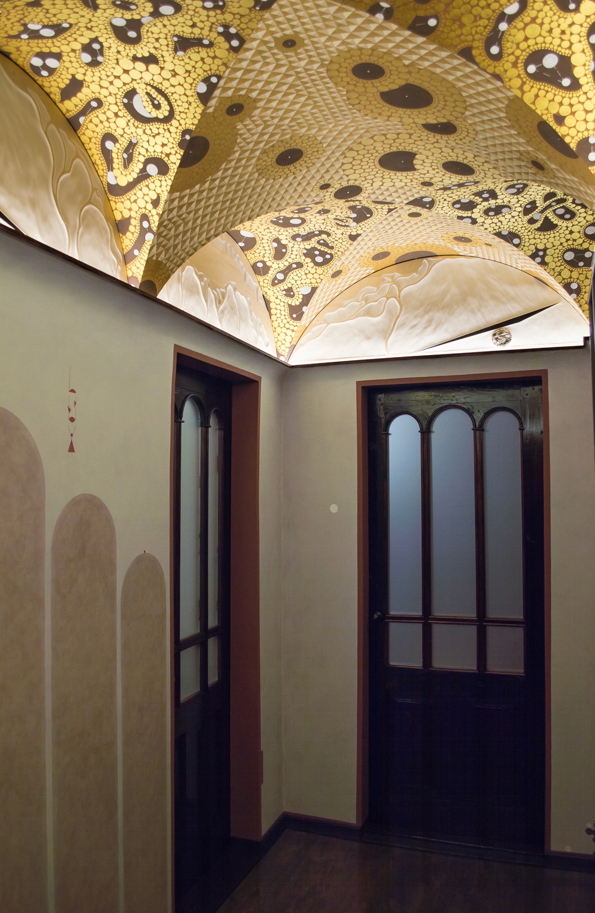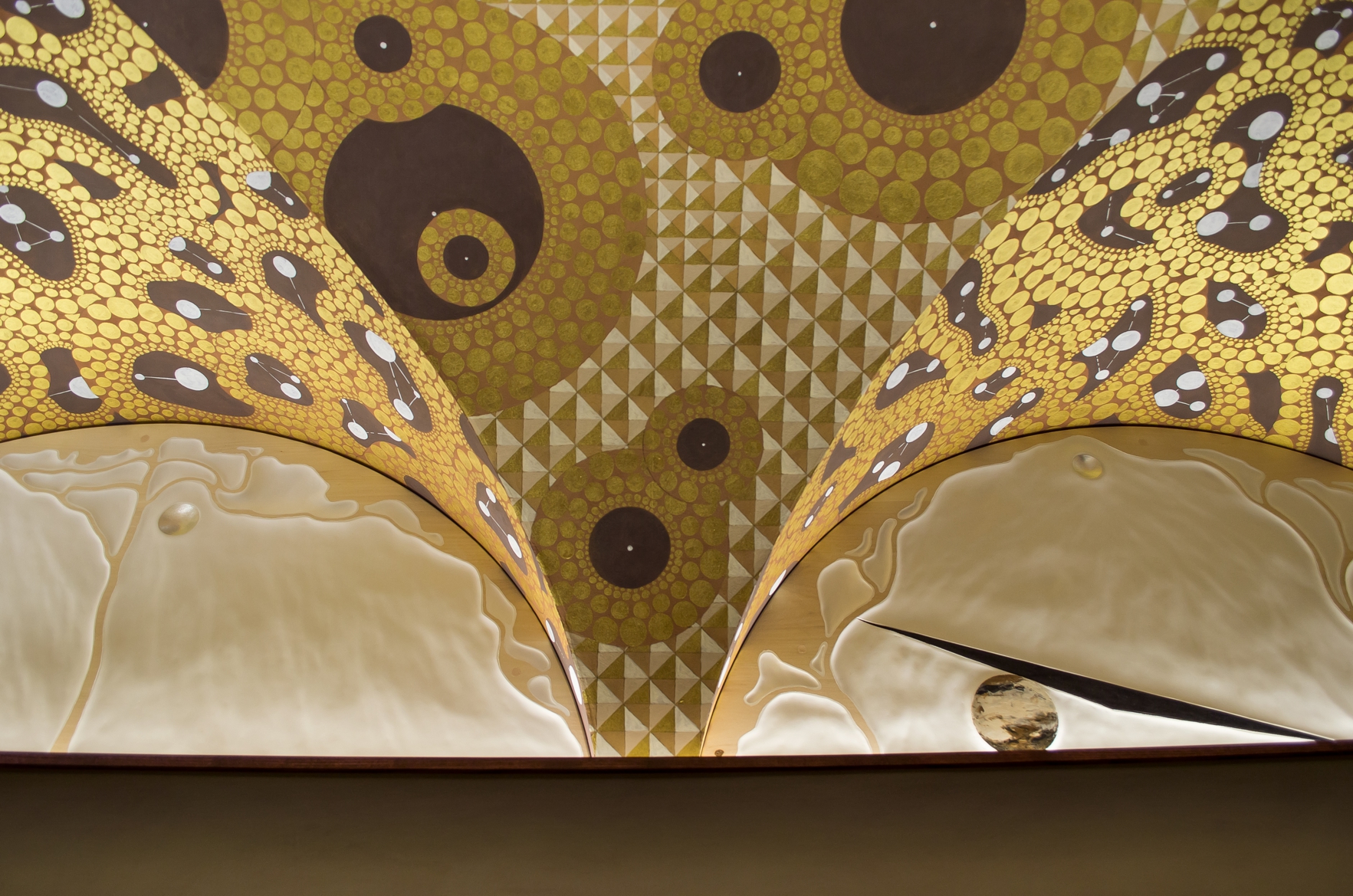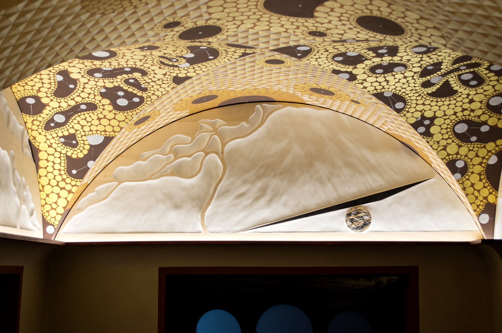 The realisation includes the vault construction, walls and vault polychromes, lighting, and reliefs on panels.