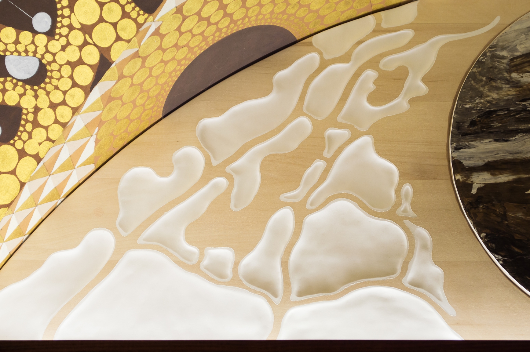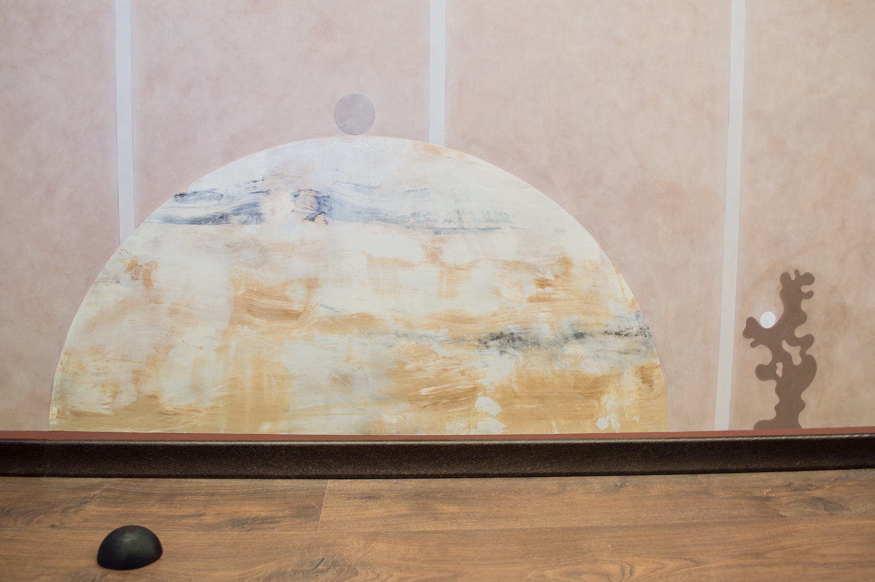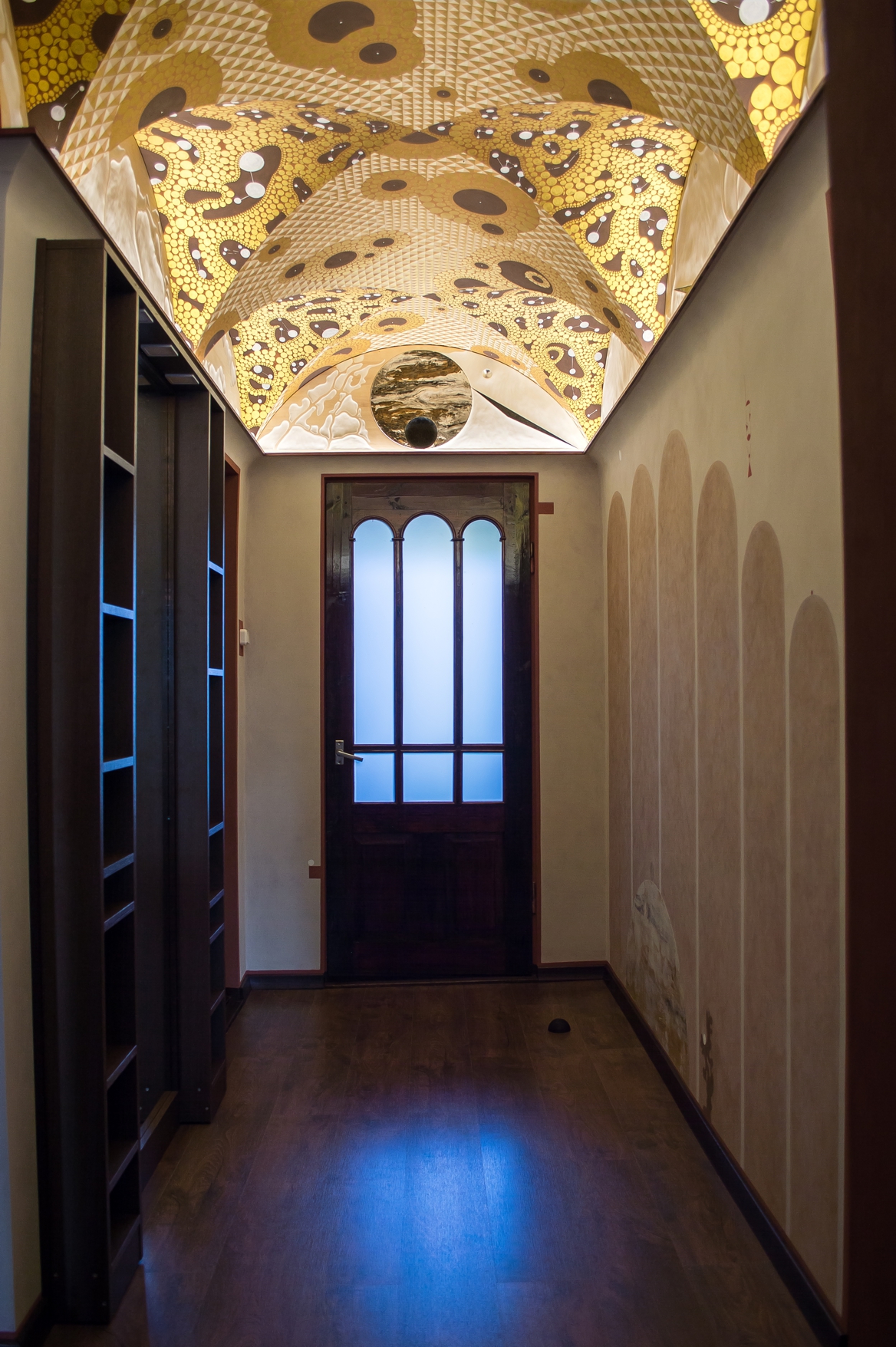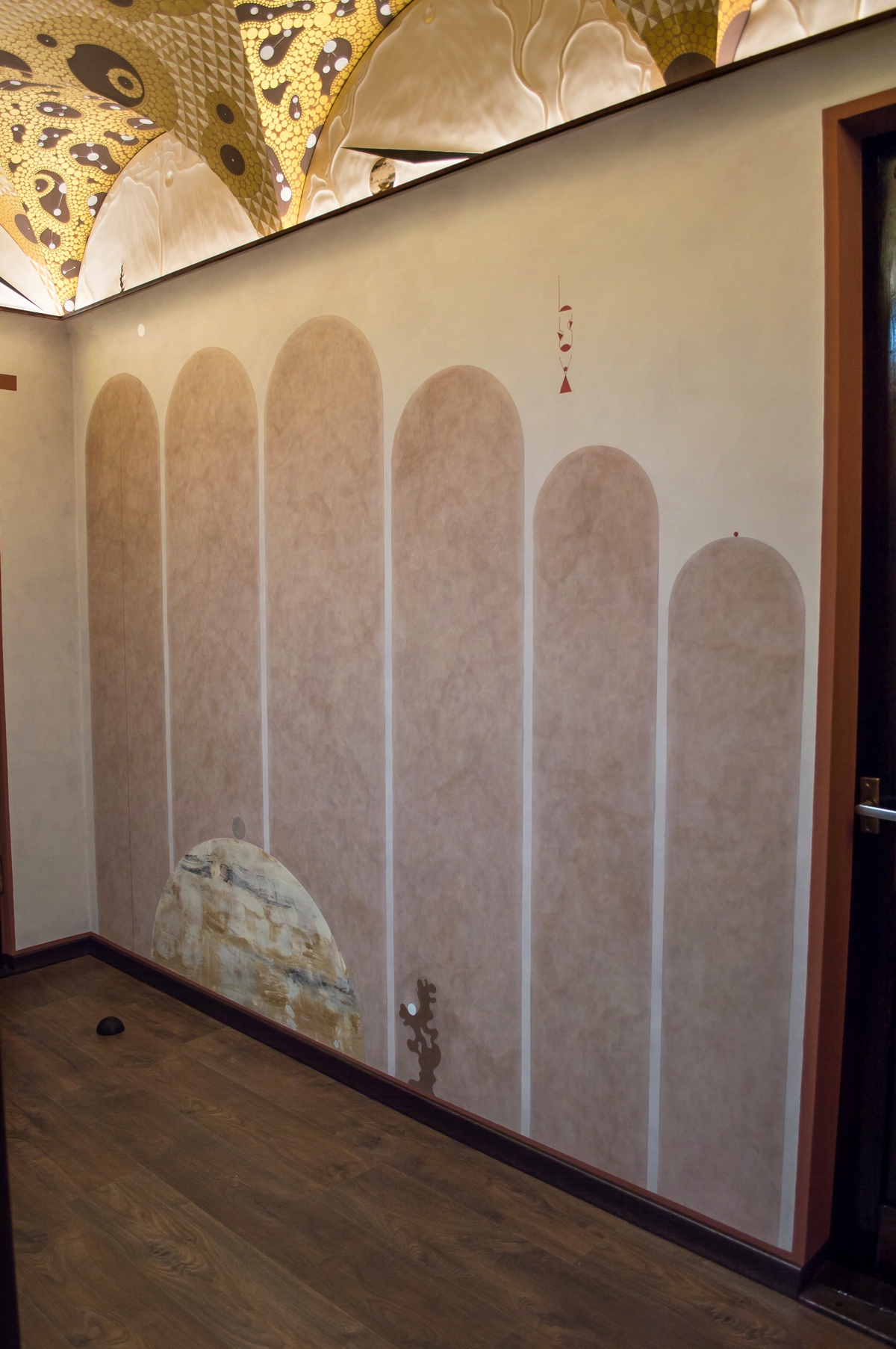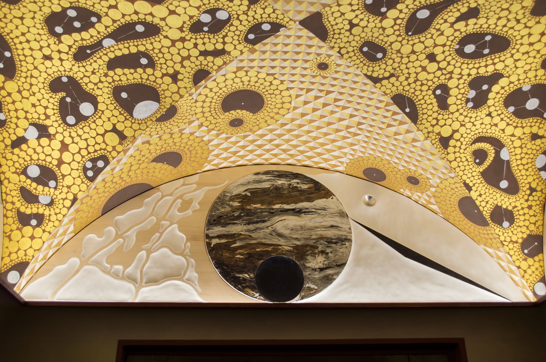 The realisation includes the vault construction, walls and vault polychromes, lighting, and reliefs on panels.