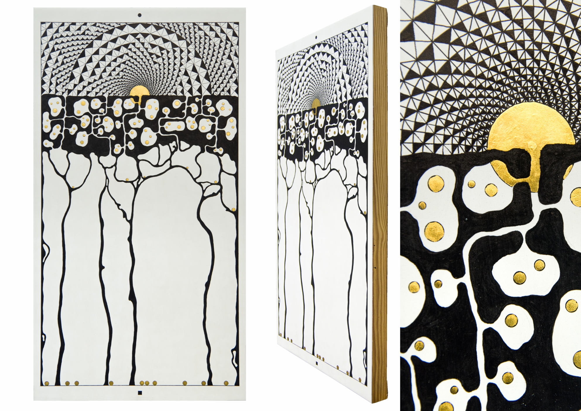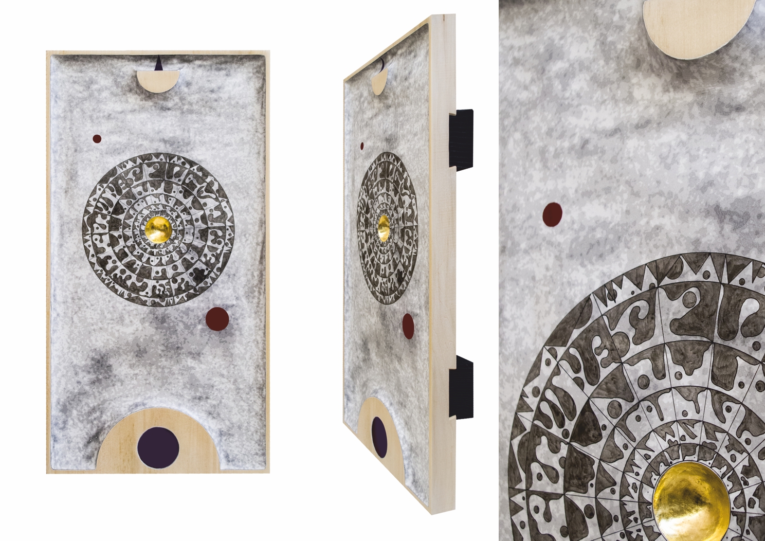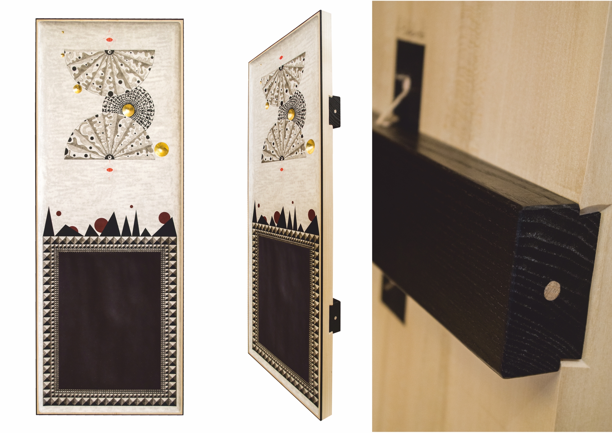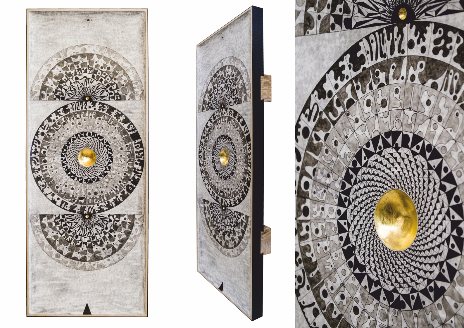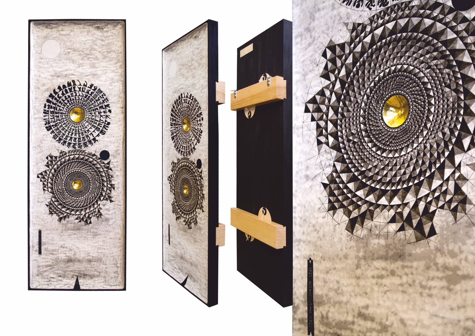 Paintings & reliefs on panels (part 1) Artworks on panels are made by the use of traditional techniques incl. egg tempera, ink, shellac, gold leaf, intarsia, self-made gesso, and carving.