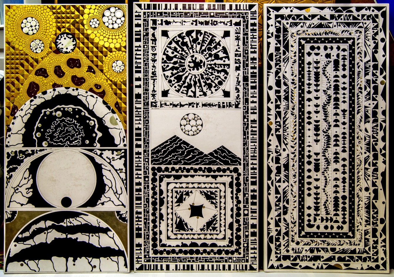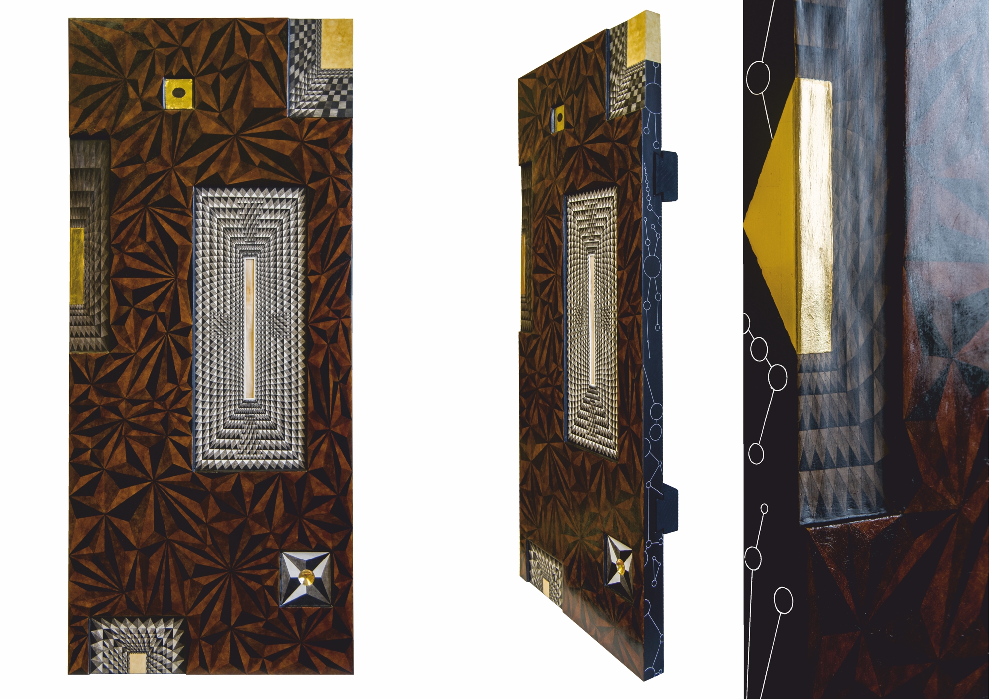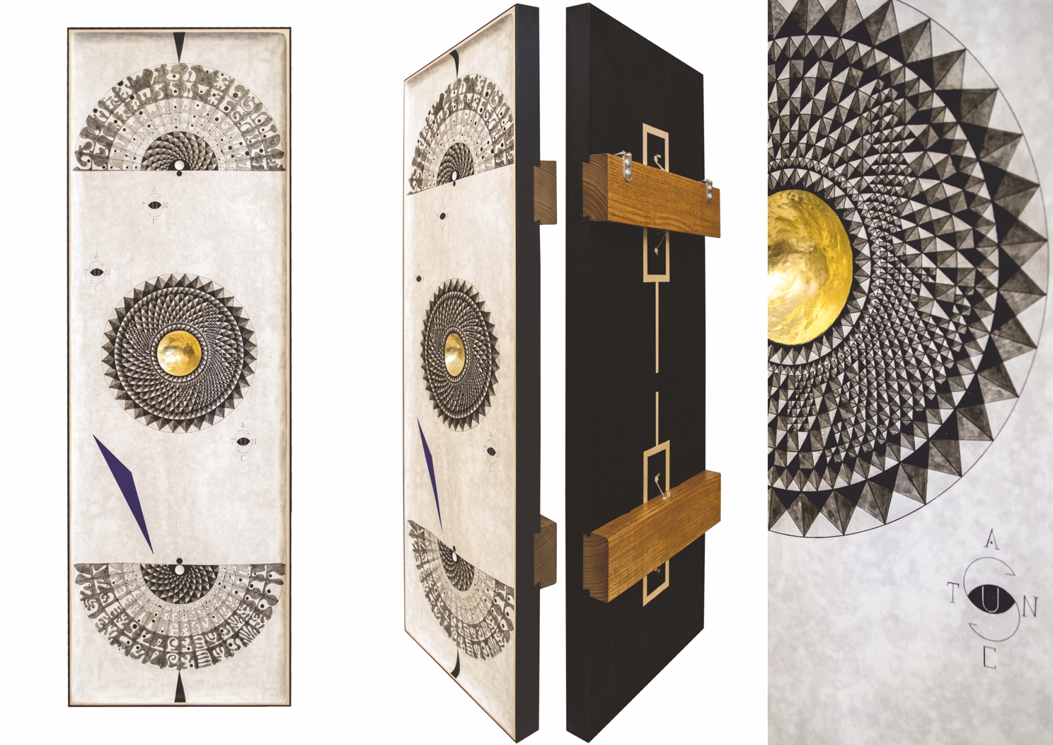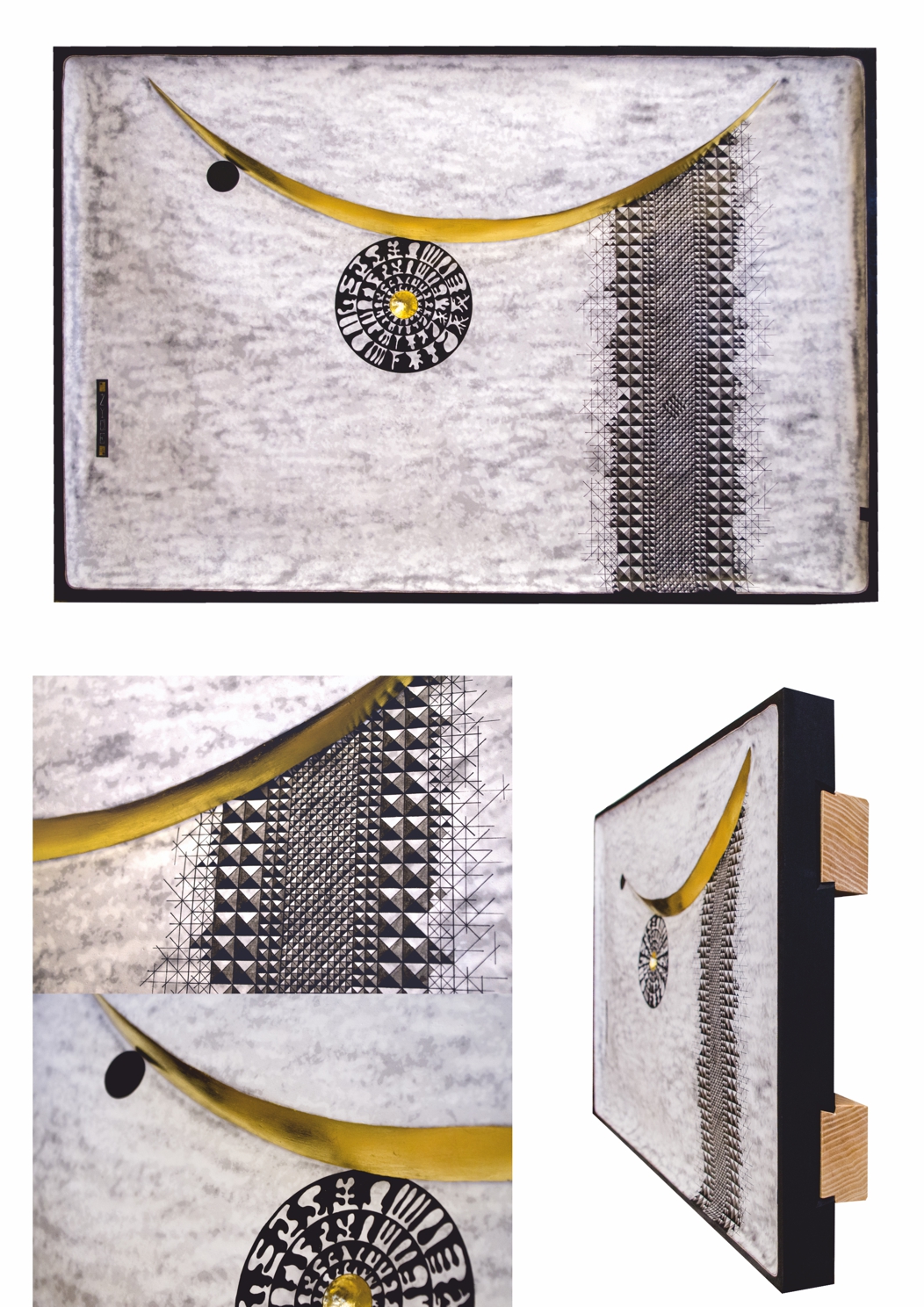 Paintings & reliefs on panels (part 1) Artworks on panels are made by the use of traditional techniques incl. egg tempera, ink, shellac, gold leaf, intarsia, self-made gesso, and carving.