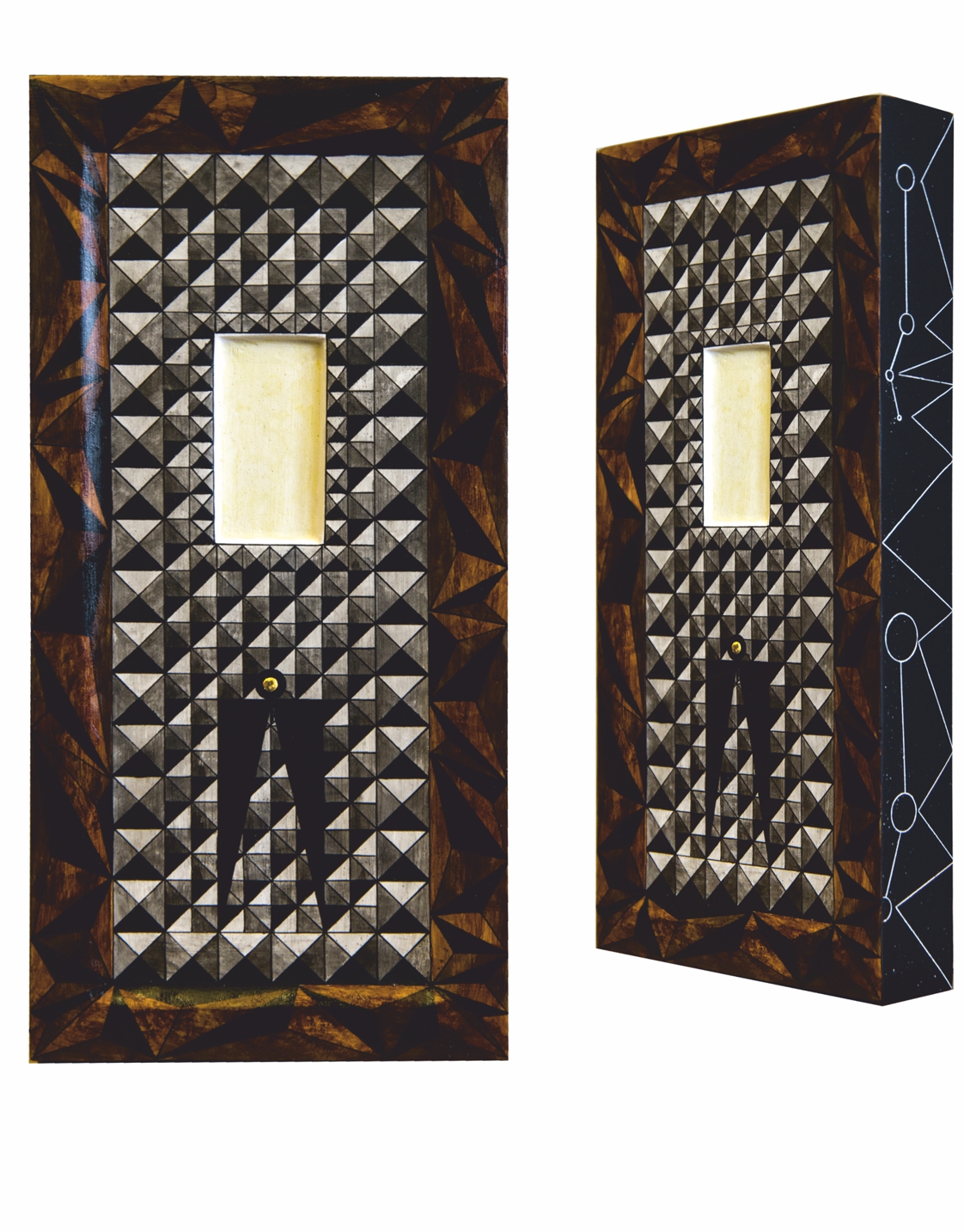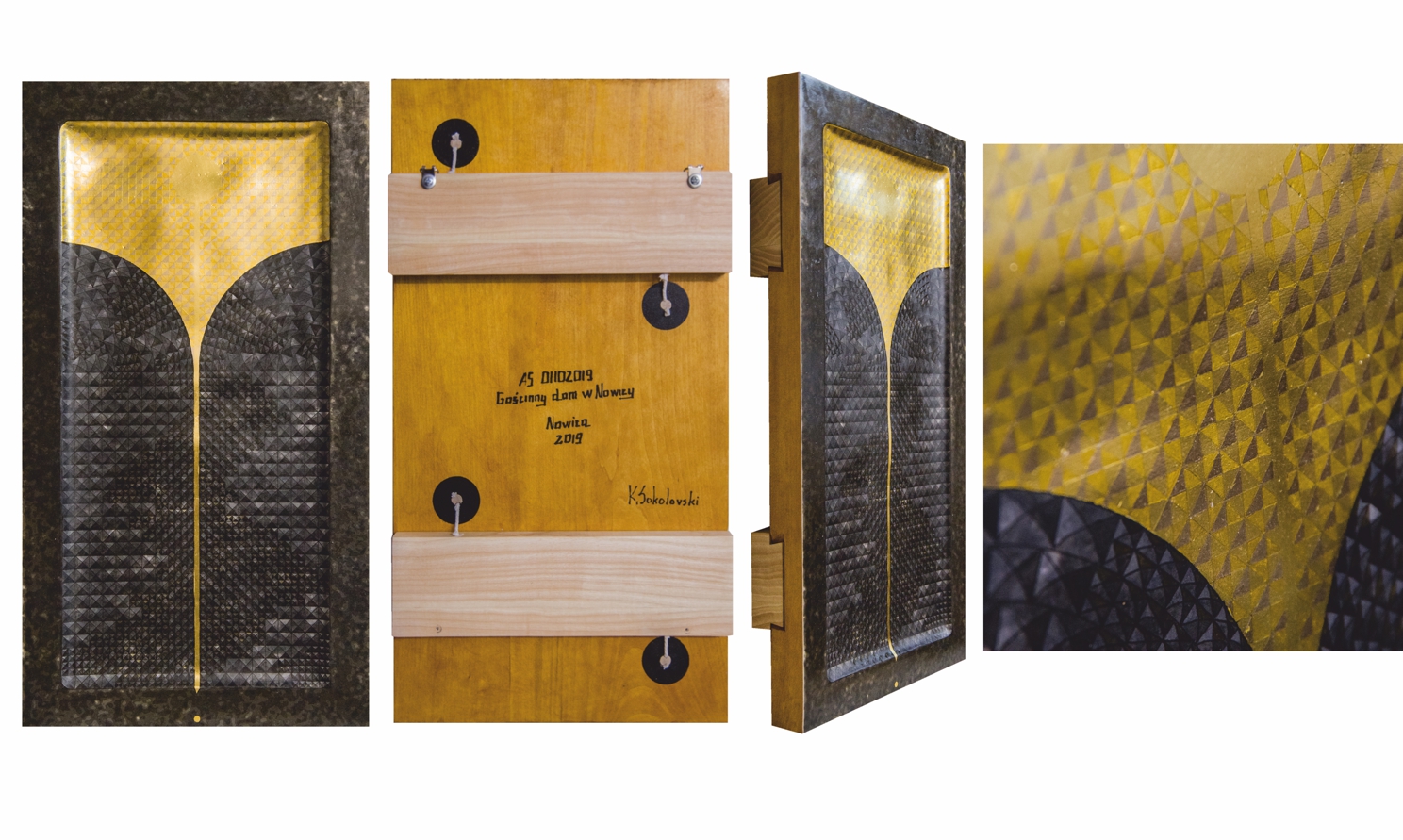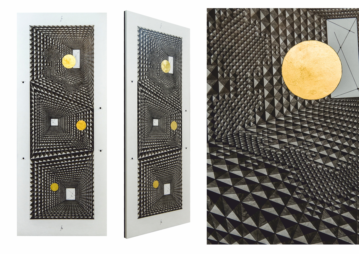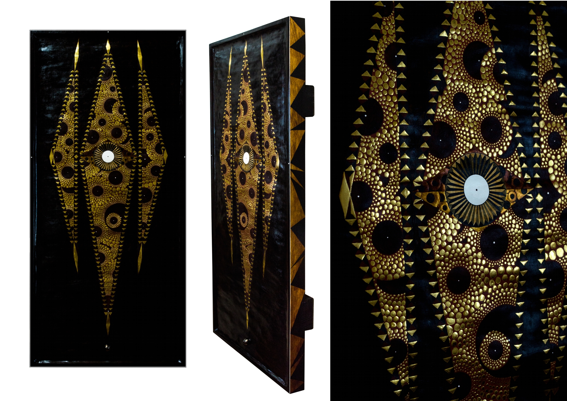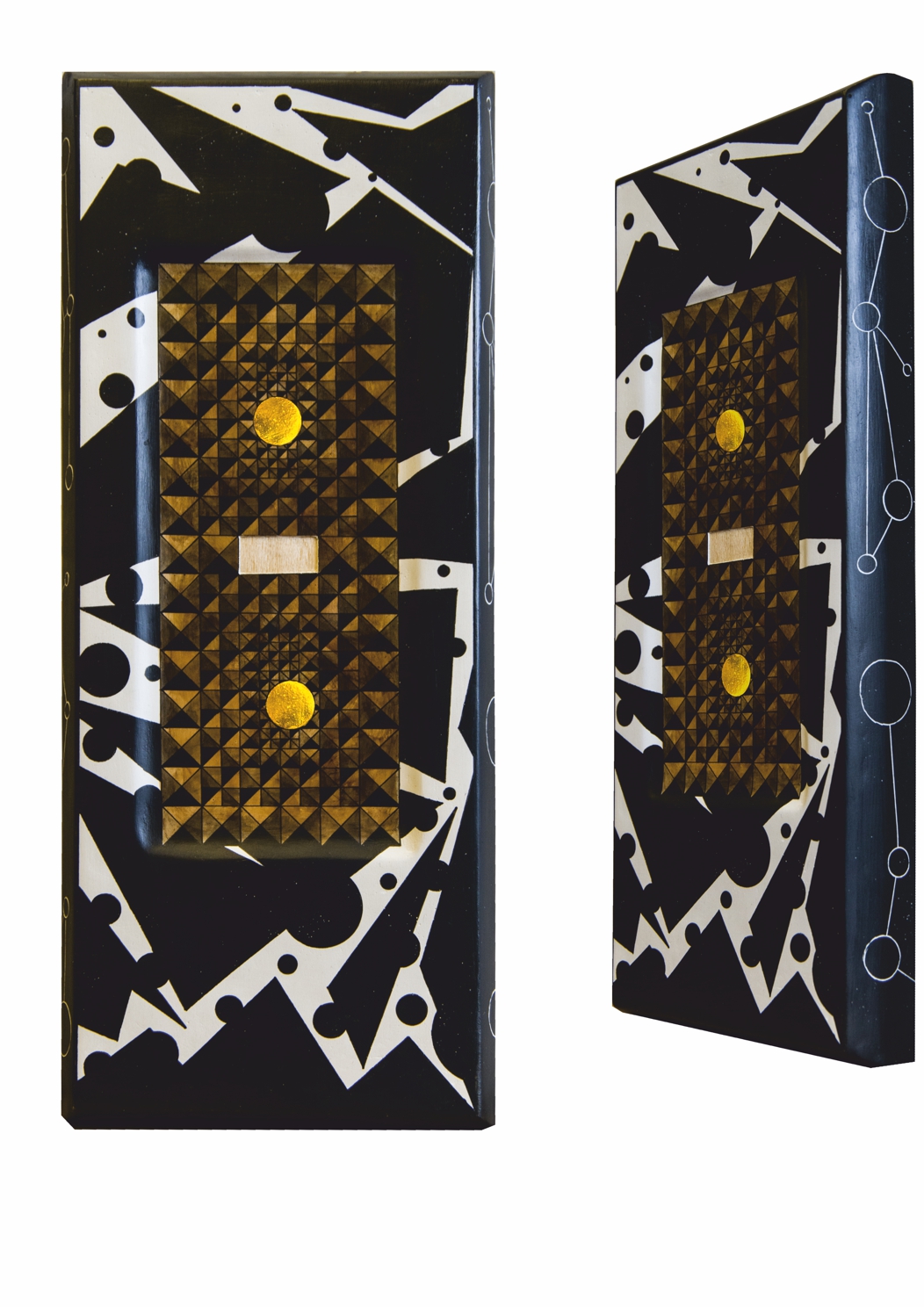 Paintings & reliefs on panels (part 1) Artworks on panels are made by the use of traditional techniques incl. egg tempera, ink, shellac, gold leaf, intarsia, self-made gesso, and carving.