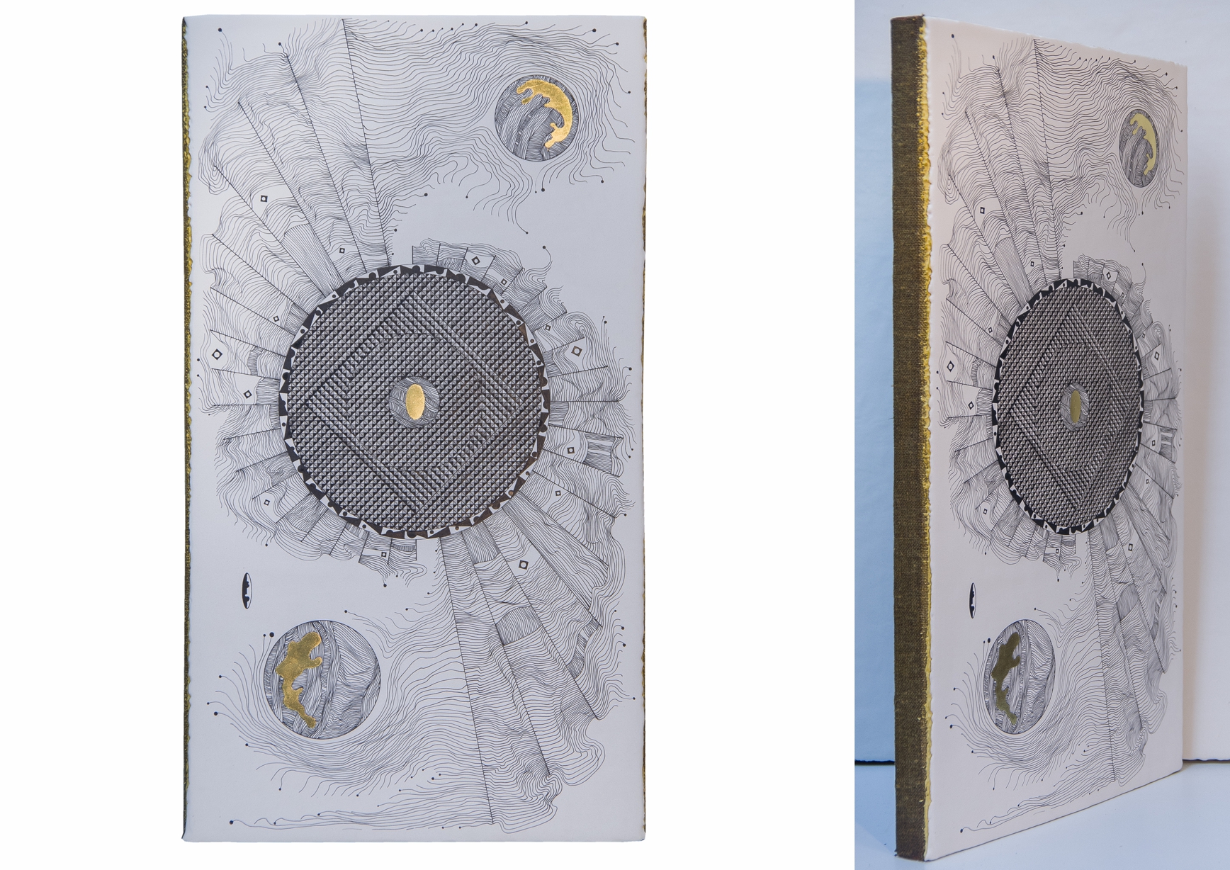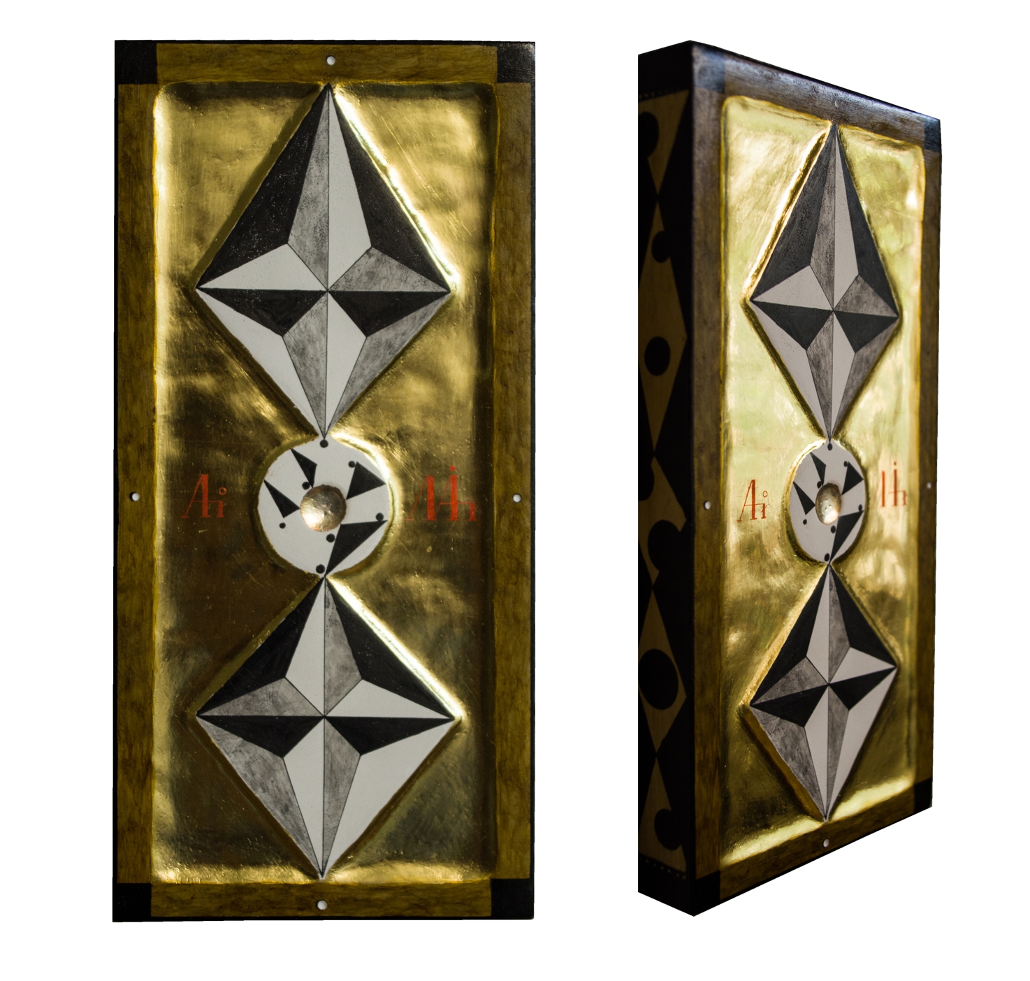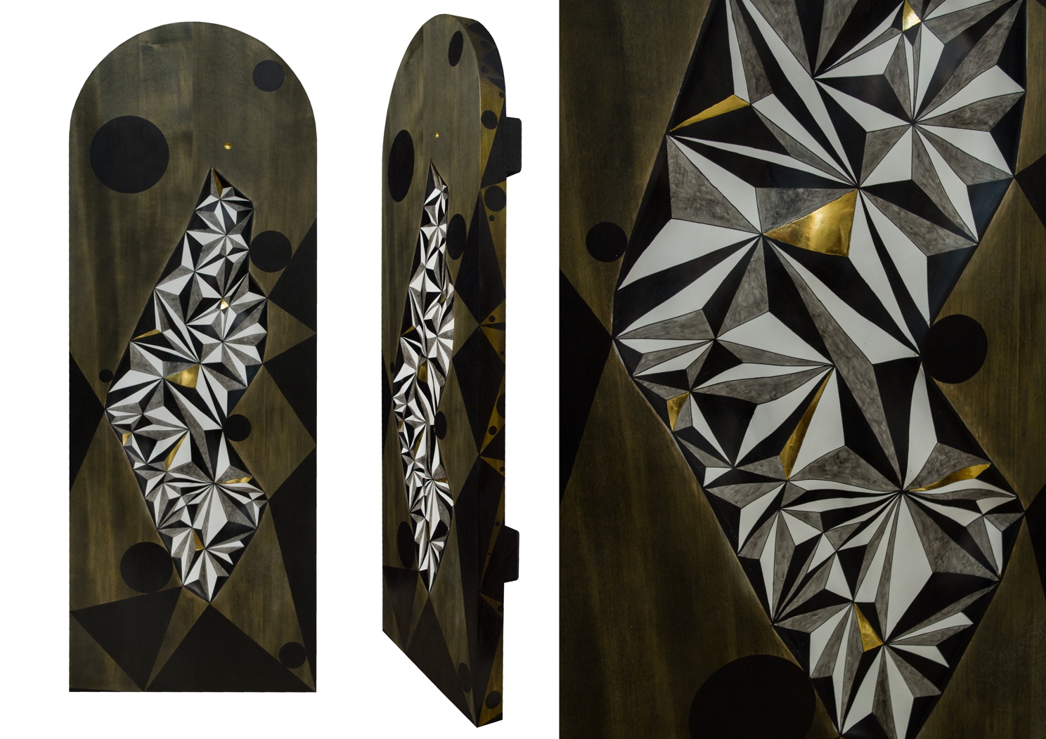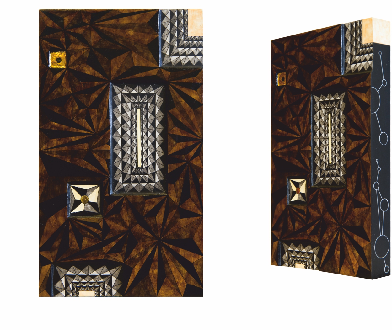 Paintings & reliefs on panels (part 1) Artworks on panels are made by the use of traditional techniques incl. egg tempera, ink, shellac, gold leaf, intarsia, self-made gesso, and carving.
