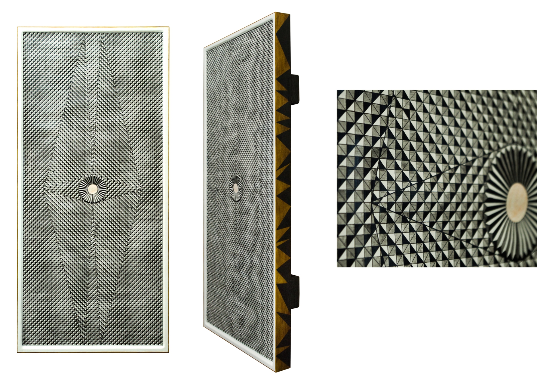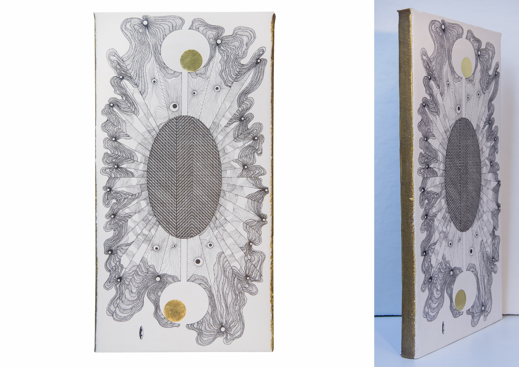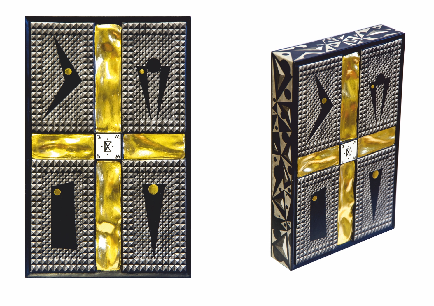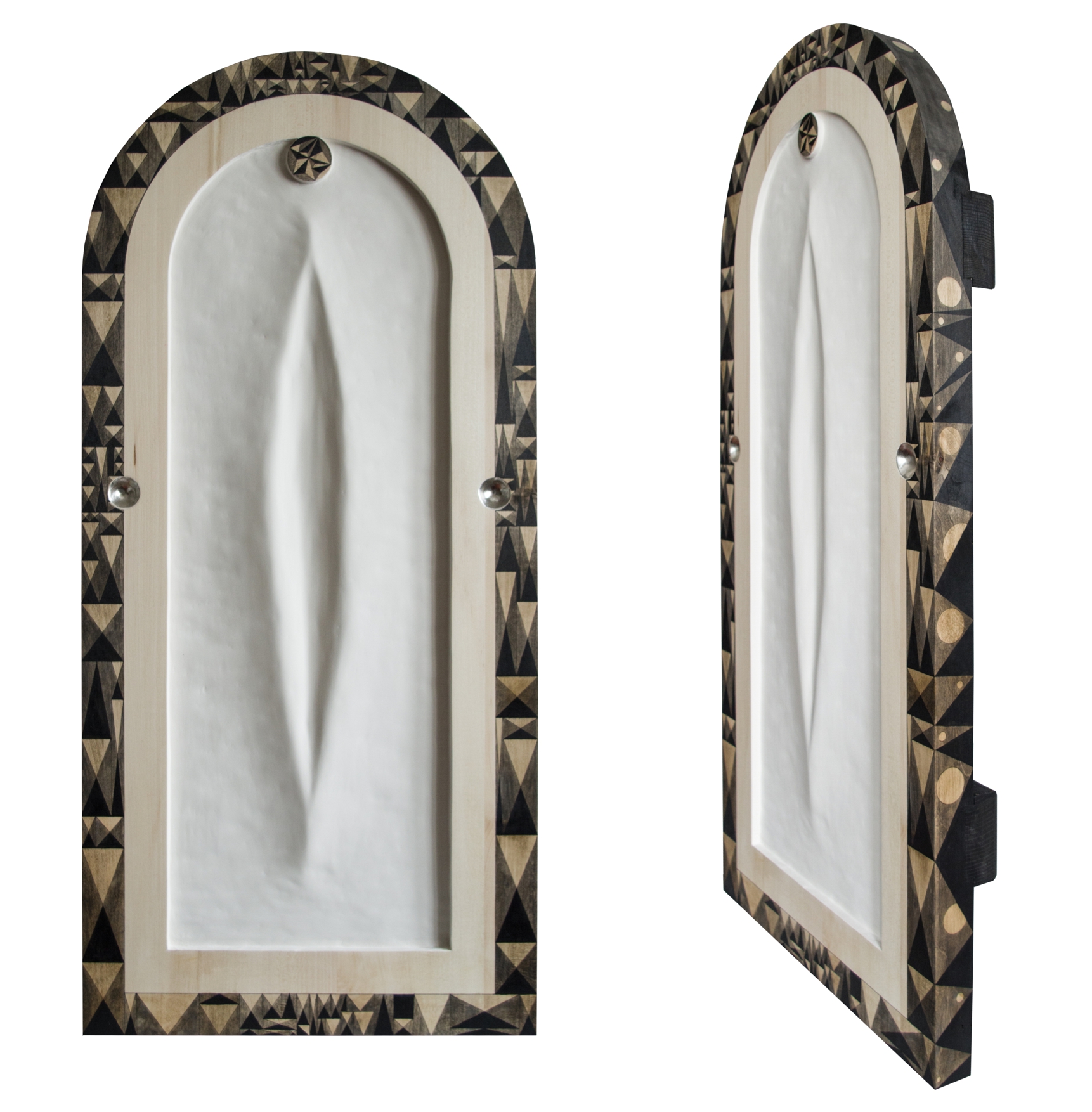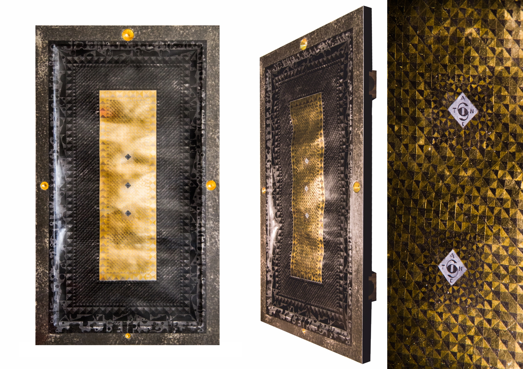 Paintings & reliefs on panels (part 1) Artworks on panels are made by the use of traditional techniques incl. egg tempera, ink, shellac, gold leaf, intarsia, self-made gesso, and carving.