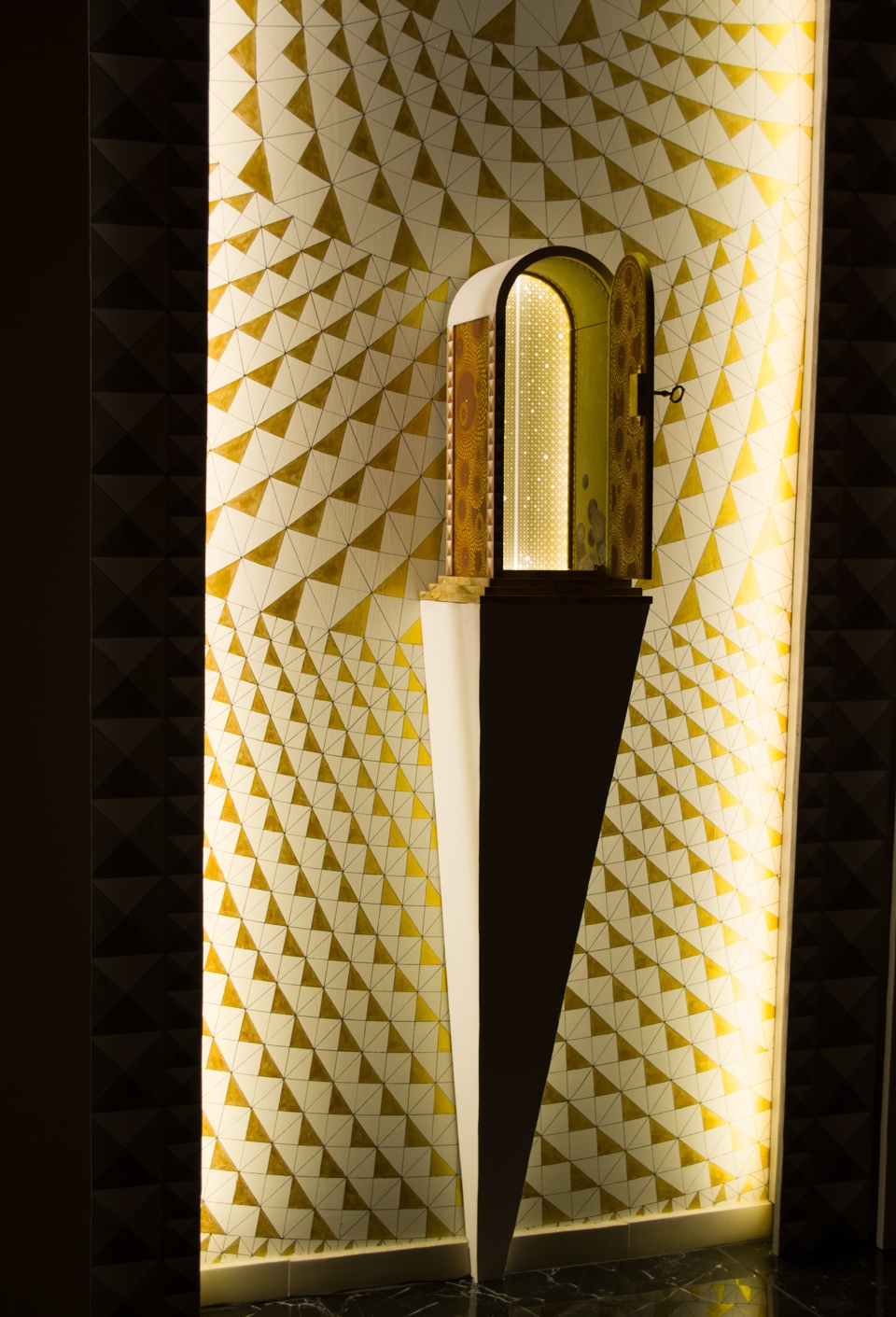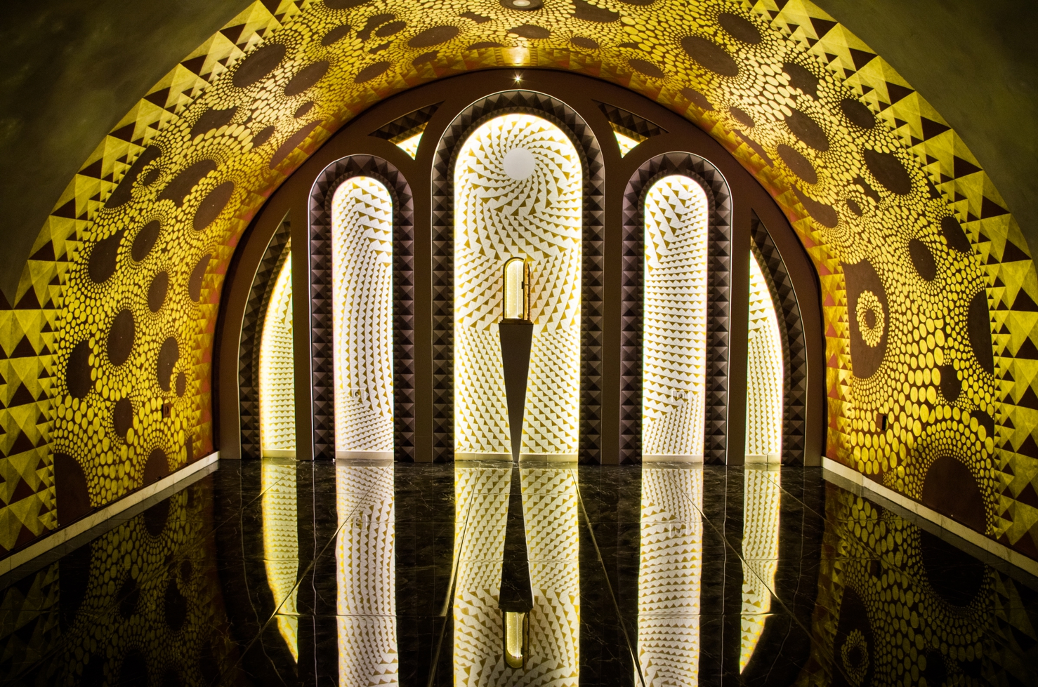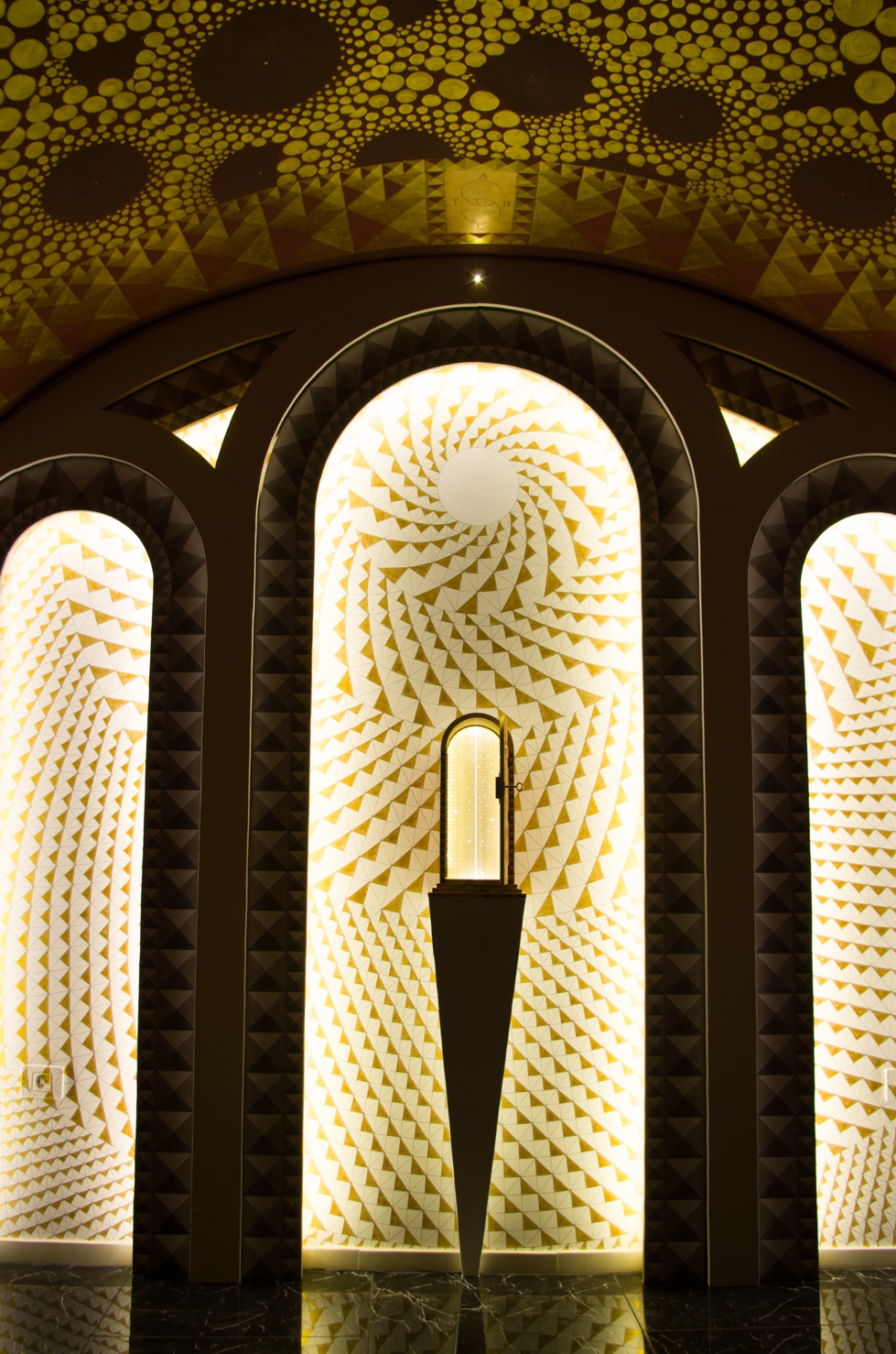 The realisation includes walls and vault polychromes, the arrangement of lighting, and other elements of interior design.