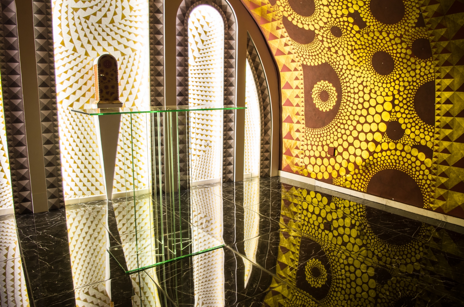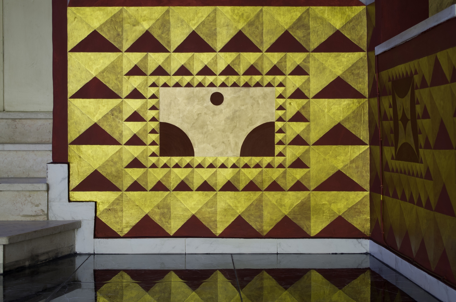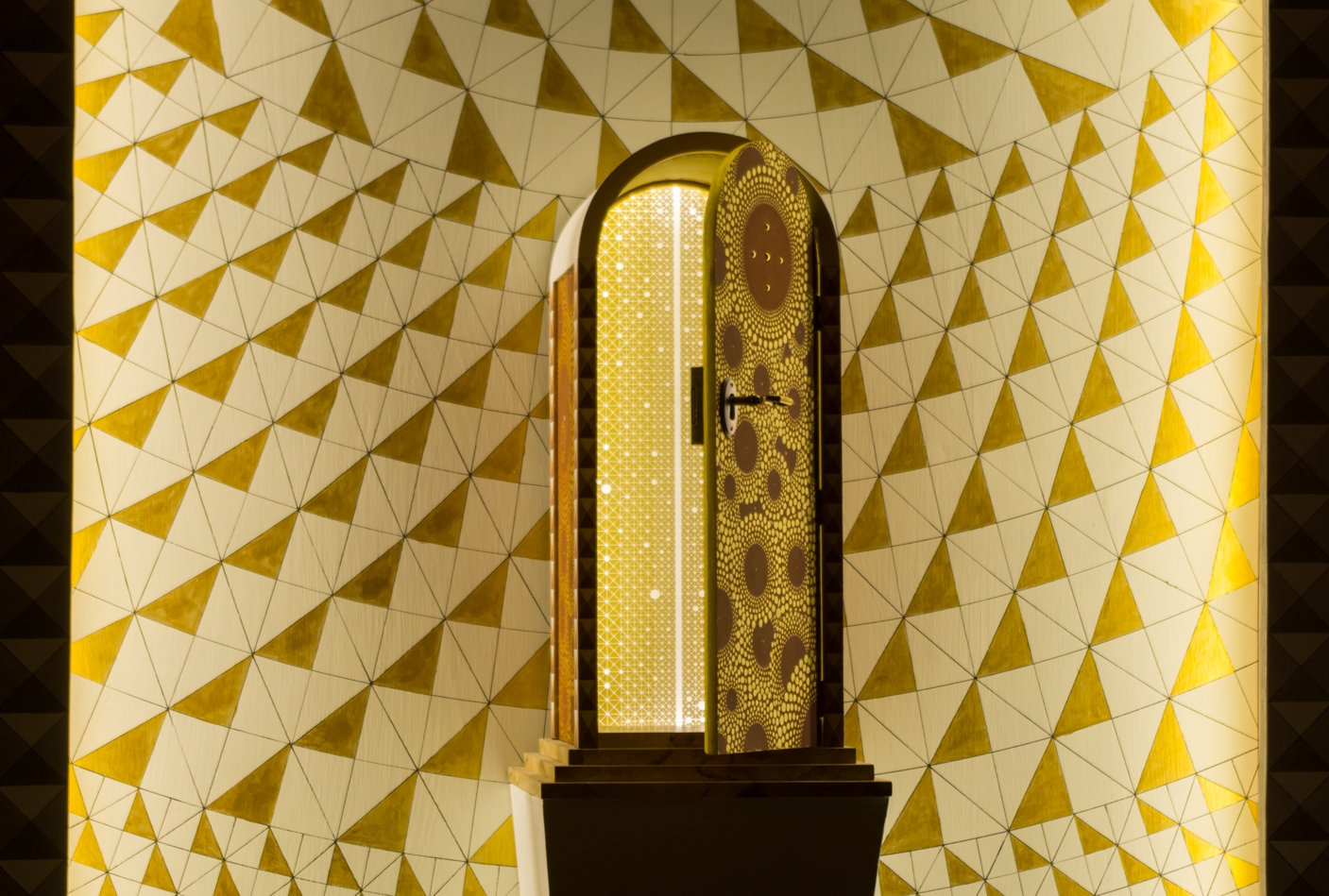 The realisation includes walls and vault polychromes, the arrangement of lighting, and other elements of interior design.